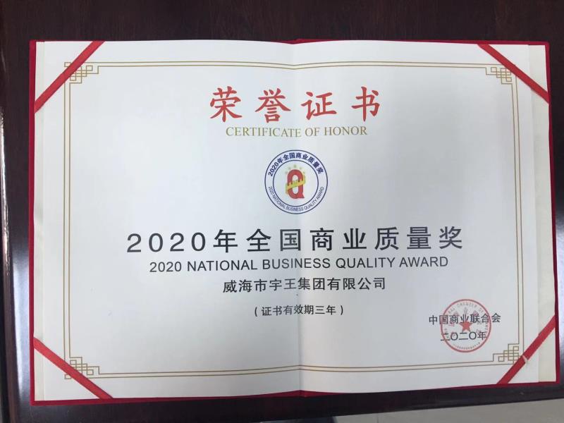 會(huì)上,宇王集團(tuán)榮獲2020年全國(guó)商業(yè)質(zhì)量獎(jiǎng)。