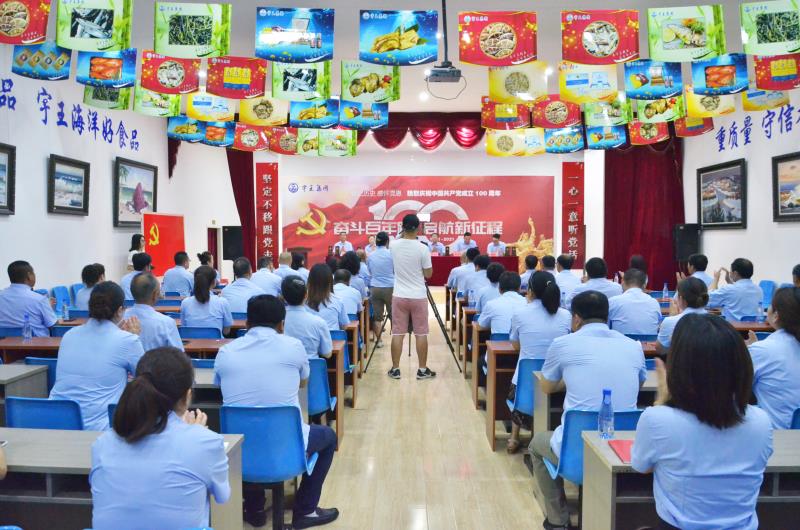 2021年7月1日,正值偉大的中國共產黨百年華誕,宇王集團在海洋生物館會議大廳舉行熱烈慶祝中國共產黨成立100周年主題活動。參加會議的人員有:宇王退休黨員干部代表、在職全體黨員、入黨積極分子、副部級以上干部共60人。會議由宇王集團黨委副書記隋樹武主持。