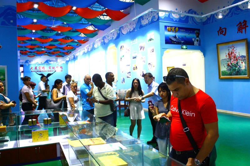 9月14日,來(lái)華參加研修班的古巴政府代表團(tuán)一行20余人,在中聯(lián)部、農(nóng)業(yè)部及省市海洋漁業(yè)部門(mén)領(lǐng)導(dǎo)陪同下考察宇王集團(tuán)海洋生物產(chǎn)業(yè)園。