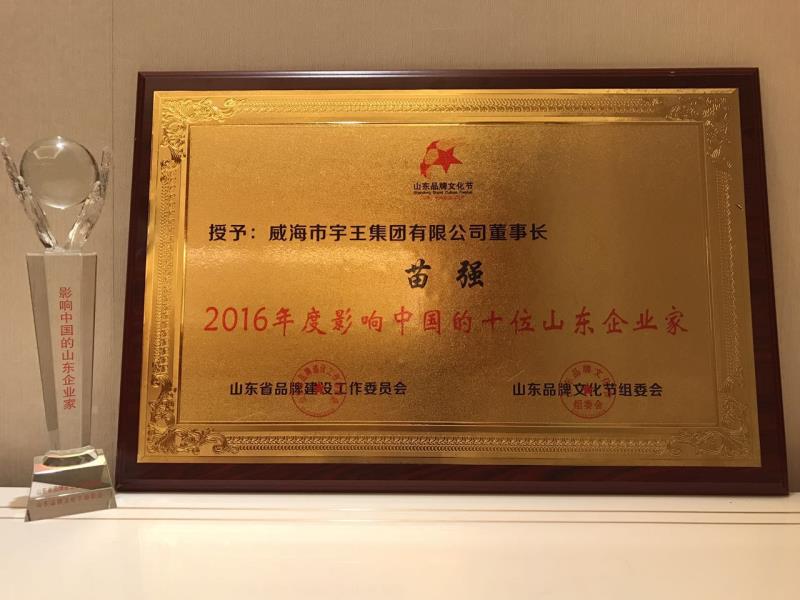 新年伊始,宇王集團再獲喜訊,在剛剛結(jié)束的第八屆山東品牌文化節(jié)頒獎盛典大會上,宇王集團榮獲《藍色經(jīng)濟十大領(lǐng)軍企業(yè)獎》,《山東最具投資潛力的特色園區(qū)獎》,集團公司董事長苗強獲得“山東品牌建設功勛人物獎“即《2016年度影響中國的十位山東企業(yè)家獎》。