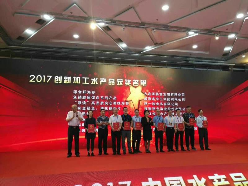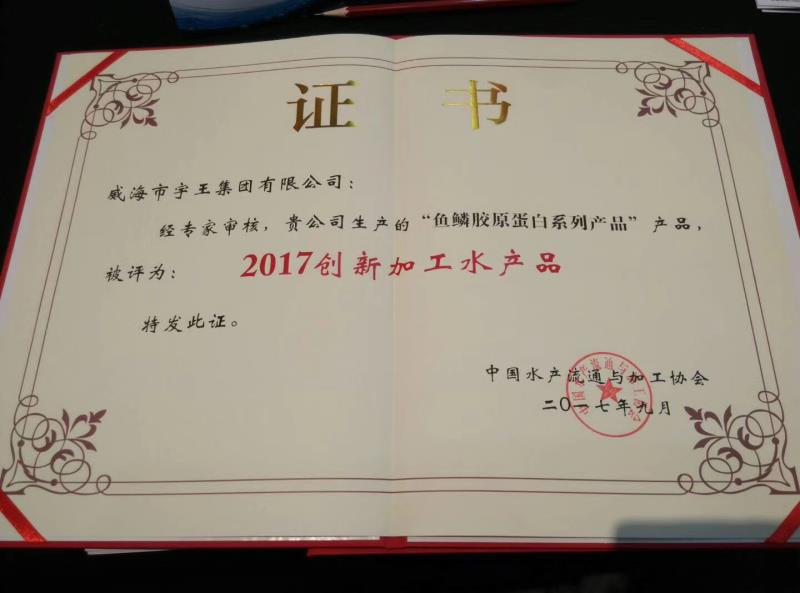9月22日,“2017中國水產(chǎn)品品牌大會”在京召開,威海市宇王集團有限公司在本次大會上榮獲“2017最具影響力水產(chǎn)品企業(yè)品牌”大獎;經(jīng)專家組審核,公司的魚鱗膠原蛋白系列產(chǎn)品榮獲“2017創(chuàng)新加工水產(chǎn)品”大獎。