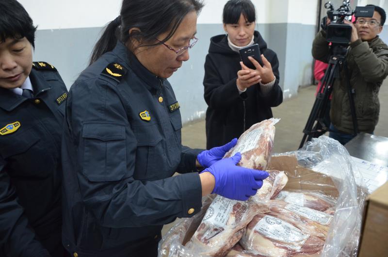 該批牛肉為冷凍牛腱子肉,原產(chǎn)國(guó)為巴西,重量約為26噸,這是威海港口岸獲得進(jìn)口肉類指定口岸資質(zhì)后,首次開展進(jìn)口肉類業(yè)務(wù)。山東威海檢驗(yàn)檢疫局工作人員來(lái)到宇王保稅倉(cāng)庫(kù),現(xiàn)場(chǎng)核查該批貨物的內(nèi)外包裝、標(biāo)識(shí)與證書內(nèi)容的一致性,經(jīng)檢驗(yàn)檢疫合格后,該批牛肉即可投放國(guó)內(nèi)市場(chǎng)。
