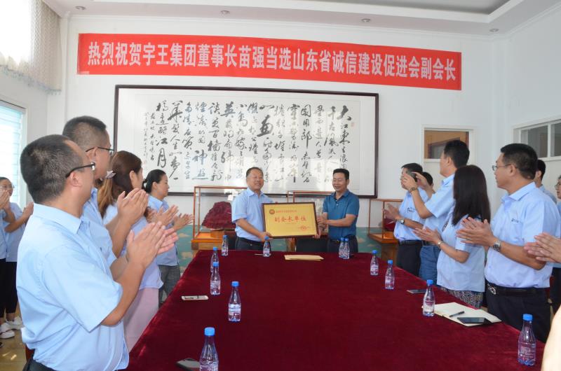 威海市宇王集團(tuán)榮獲山東省誠(chéng)信建設(shè)促進(jìn)會(huì)副會(huì)長(zhǎng)單位,宇王集團(tuán)董事長(zhǎng)苗強(qiáng)當(dāng)選省誠(chéng)信建設(shè)促進(jìn)會(huì)副會(huì)長(zhǎng)。17日上午,在宇王集團(tuán)會(huì)議室進(jìn)行了授牌儀式。