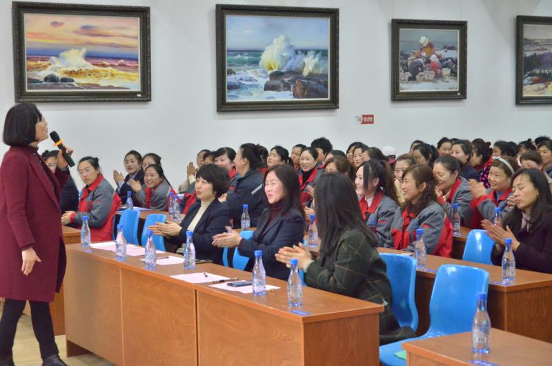 公司邀請到威海市環(huán)翠區(qū)總工會(huì)的授課專家王青妍教授為大家展開女性心理健康知識講座。王教授用生動(dòng)的語言、精彩的案例結(jié)合獨(dú)有的心理按摩技巧,為大家進(jìn)行了深入的精神疏導(dǎo),并將她自己生活中常用的心理溝通方法傾囊相授,用輕度催眠為現(xiàn)場的女職工舒緩壓力。臺下所有職工感到受益匪淺,紛紛用歡笑與掌聲表達(dá)對教授的感謝。
