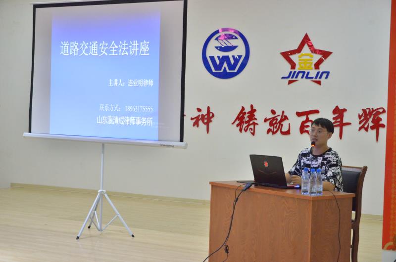 山東瀛清成律師事務所的連律師從參會人員的日常工作和生活出發(fā),主要針對“道路安全行駛、保險與責任、事故處理與判定、酒駕與刑罰”等日常生活中的常見問題答疑解惑,通過身邊大量案例講解,概念闡述,現(xiàn)場互動等方式授課。整場內(nèi)容豐富,寓意深刻,易于接受,令所有參訓人員感到意猶未盡,受益匪淺。